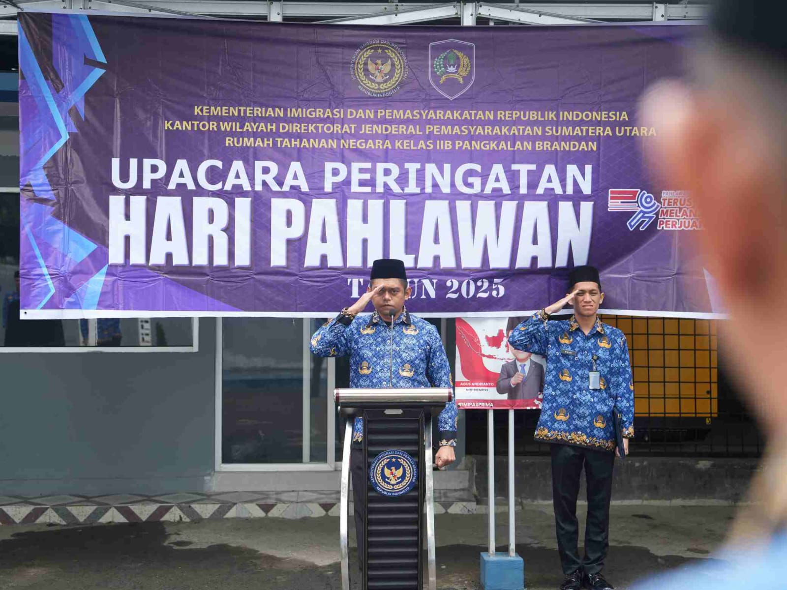 Pangkalan Brandan – Rumah Tahanan Negara (Rutan) Kelas IIB Pangkalan Brandan menggelar upacara peringatan Hari Pahlawan dengan khidmat di halaman utama rutan pada Senin, 10 November 2025. Upacara ini diikuti oleh seluruh pegawai dan petugas Rutan Pangkalan Brandan.