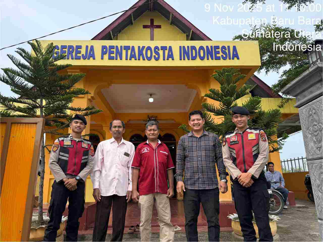 Kegiatan pengamanan dilaksanakan pada Minggu, 9 November 2025, mulai pukul 11.00 WIB hingga selesai. Personel Sat Sabhara yang terdiri dari Aipda Dedi Iskandar, Bripda Alfi, Bripda Dandi, dan Bripda Dimas, menggunakan kendaraan roda empat (R-4) untuk melakukan patroli dan pengamanan di gereja-gereja yang telah ditentukan.