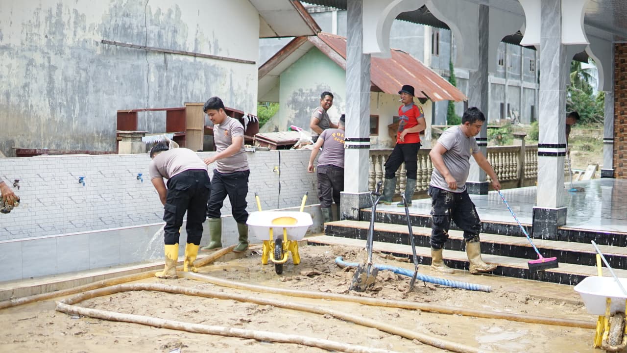 “Personel Polres Langsa bersama masyarakat membersihkan lumpur dan sisa material banjir yang ada di lingkungan sekolah. Kegiatan ini akan terus dilakukan hingga kondisi sekolah kembali bersih dan layak digunakan untuk kegiatan belajar mengajar,” ujar AKP Jufrizal.