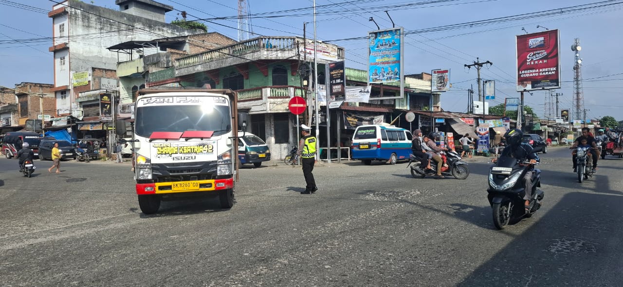 Batu Bara – Pos Pengamanan (Pos Pam) I Simpang IV Limapuluh Polres Batu Bara terus aktif melaksanakan pengaturan lalu lintas (gatur) dan live report situasi arus lalu lintas di depan Pos Pam pada hari Minggu, 4 Januari 2026, mulai pukul 12.30 WIB hingga selesai. Kegiatan ini merupakan bagian dari Operasi Lilin Toba 2025.