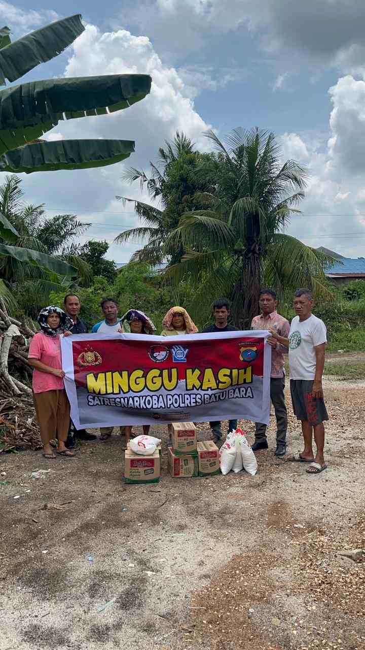 Dalam kegiatan tersebut, personel Satresnarkoba Polres Batu Bara memberikan bantuan sembako kepada masyarakat yang membutuhkan, serta memberikan himbauan mengenai bahaya narkoba dan cara mencegah penyalahgunaan narkoba.